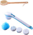 - Versatile Functionality: Combines five essential shower features in one device—cleansing brush, exfoliating brush, massaging head, pumice stone, and facial sponge.