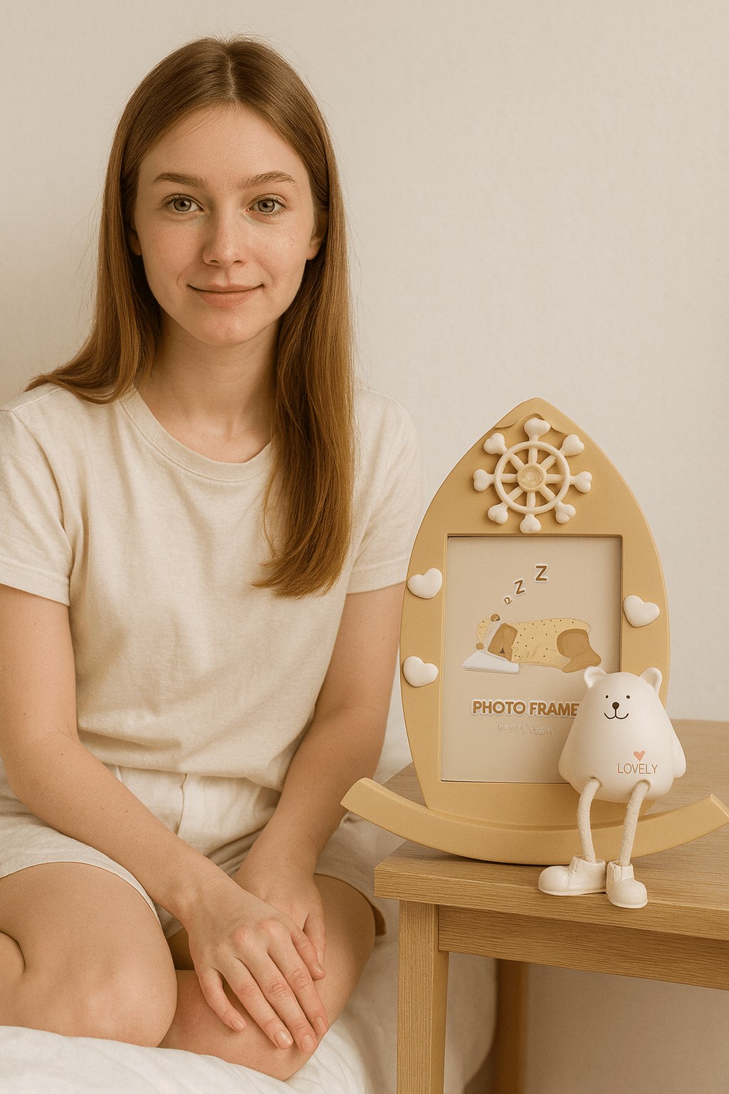 ✔ Bear & Ship Wheel Frame (12.8 x 17.6 cm) – Designed with cute heart accents, a sleeping bear print, and a 3D "Lovely" bear figurine – ideal for kids’ rooms or baby gifts.