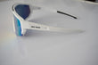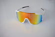 The white frame stands out while red lenses cut glare and sharpen visual detail.