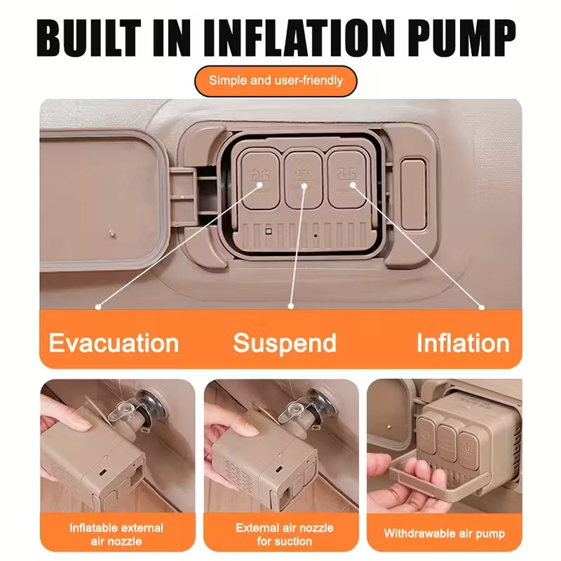 ✔ Built-in Electric Pump (shown in image) – Inflate, deflate, or stop with the integrated pump—no external tools needed.