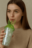 ✔ Reusable straw – Color-matching green straw, perfect for smoothies, juices, or water.