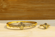 Design: Sleek bangle and ring with mini floral/leaf engravings all around.
