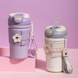 Lavender Flower Travel Mug – A pastel purple insulated tumbler with a cute floral strap, designed for stylish sipping on the go.