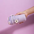 ✔ Decorative strap & charm – Comes with a matching lavender strap labeled “Fine!” and a white flower detail for added charm.