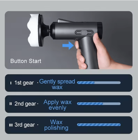 ✔ Multi-head accessory kit (label) – Comes with wave, flat, and short hair polishing discs to tackle various detailing tasks.