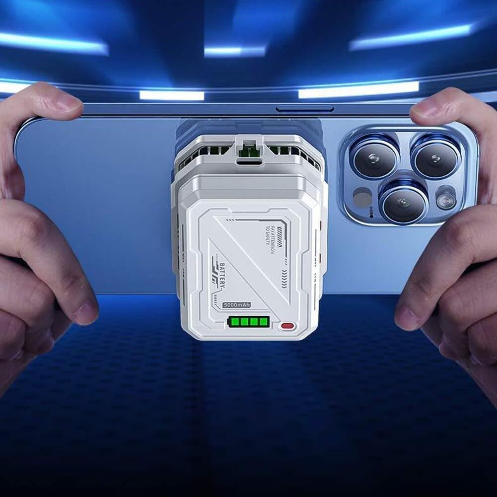 Mobile Phone Semiconductor Radiator (Battery Model) – A powerful battery-powered smartphone cooler designed for gamers and heavy users, featuring semiconductor cooling technology and a digital temperature display.