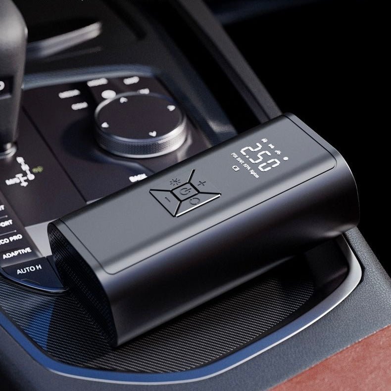 Multifunctional Digital Air Compressor – A portable, wireless tire inflator with intelligent digital display, 150 PSI pressure output, and multiple nozzles for cars, bikes, balls, and inflatables.