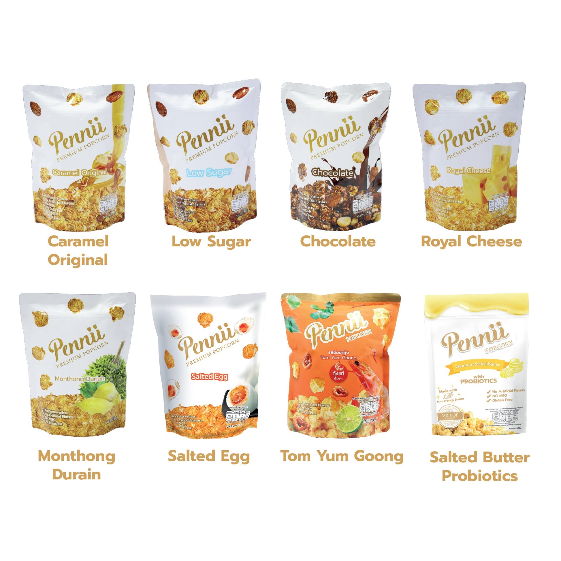 Popcorn from premium ingredients that must be tried. Pennii Premium Popcorn, a premium popcorn brand that selects only the finest raw materials. Mix together into pieces of popcorn, sweet and smooth taste. Enjoy every word! Corn kernels, butter, vanilla, tea seed oil. Premium goodies. All are carefully selected condiments to create the perfect popcorn, with the addition of specially selected almonds and macadamias. Go down on purpose, it's Pennii Premium Popcorn!