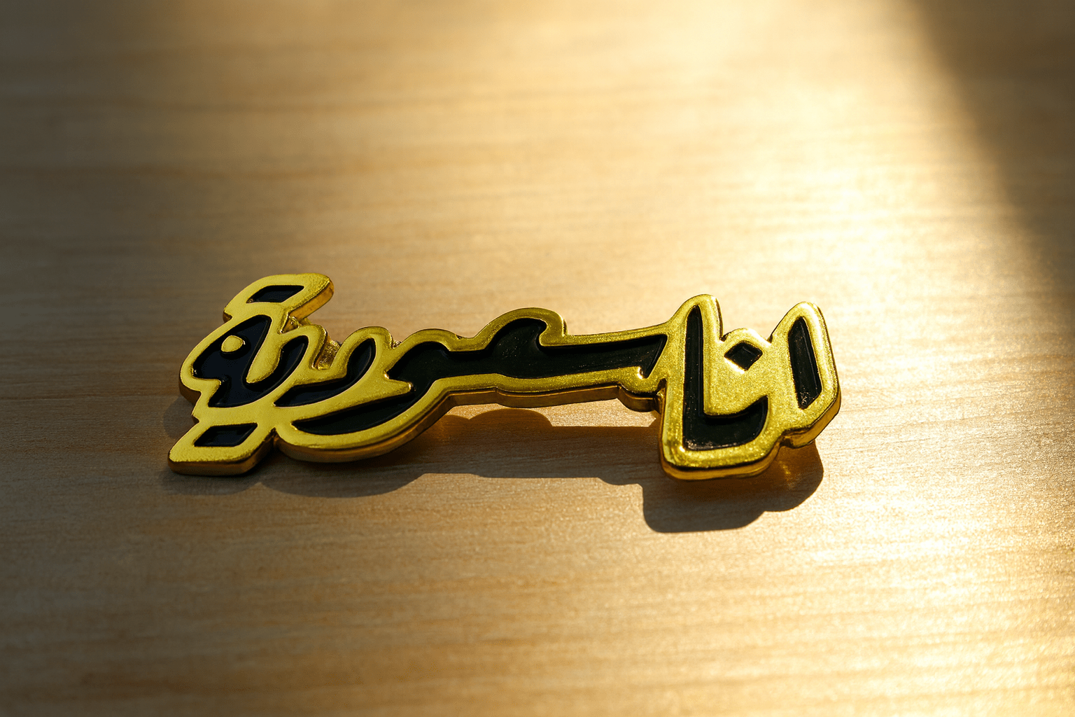 Saudi National Day Lapel Pins – A collection of patriotic pins featuring Saudi symbols, slogans, and emblems, designed for clothing, bags, or accessories during National Day celebrations.