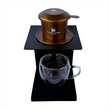 The Caphe Vietnam's Vietnamese Phin filter is perfect for brewing one cup of delicious coffee in the Vietnamese cafe style. It's carefully made from high-quality aluminum, ensuring it won't change the coffee's taste. This coffee filter is highly durable and can be safely cleaned in the dishwasher. Its traditional design adds a touch of Vietnamese flair, making it both practical and attractive. It conveniently fits on most cups or mugs, making it great for travel, camping, and coffee enthusiasts. The reusable phin filter comes in black, silver, gold, rose gold, dark grey, and red in color.